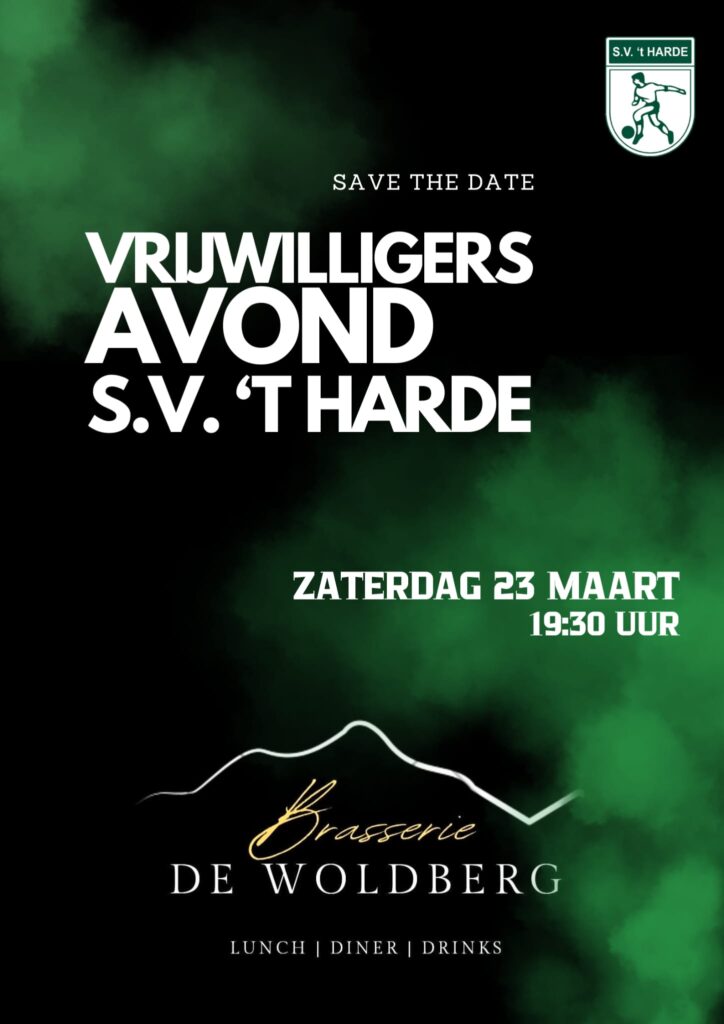 Op zaterdag 23 maart vanaf 19.30 uur zijn alle vrijwilligers van harte uitgenodigd voor een ouderwets gezellige vrijwilligersavond van S.V. ‘t Harde. De vrijwilligersavond zal gevierd worden in Brasserie De Woldberg. Iedereen die in welke vorm dan ook vrijwilligerswerk voor de vereniging doet, willen we op deze manier bedanken. Onder het genot van een hapje, drankje en muziek gaan we er een mooi feest van maken!