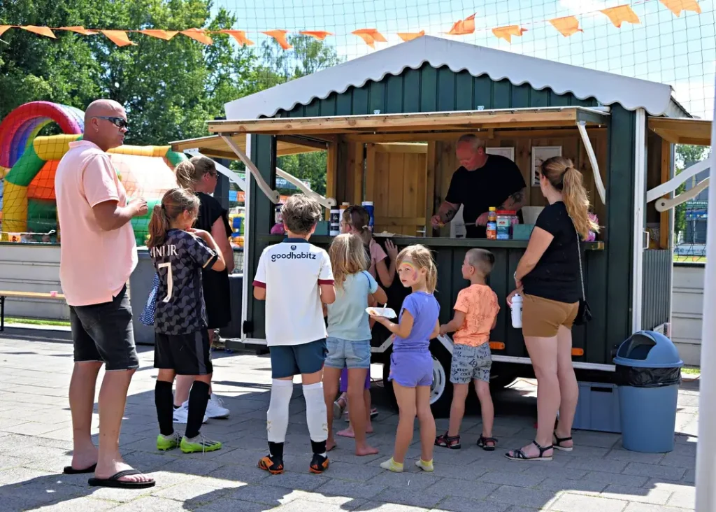 Op het terras, heerlijk in de zon, kon je genieten van de verse stroopwafels, poffertjes en heerlijk ijs. De kinderen vermaakten zich op het springkussen en de stormbaan, terwijl de muziek zorgde voor nog meer sfeer. Je kon je laten schminken, hair-extensions zetten en enveloppen trekken in de loterij. De  loterij werd mede mogelijk gemaakt door vele sponsoren*, waarvoor dank!
