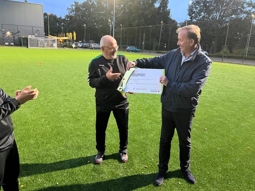 Woensdagavond 09-10-2024 vond de uitreiking van de cheque plaats. Namens de Rabobank is de cheque overhandigd aan de spelers en begeleiding van de G voetbalteams van onze club. Zij zijn erg blij met het ontvangen geldbedrag en gaan dit inzetten voor het vervoer tijdens de uitwedstrijden.