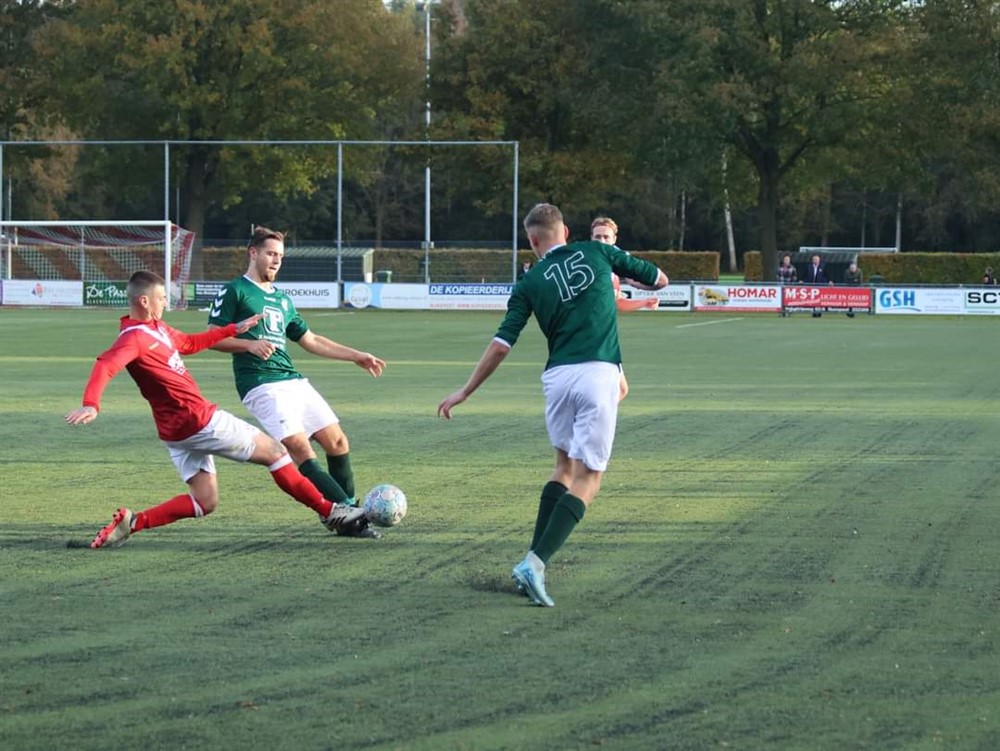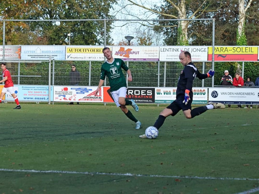 Na deze voorsprong werd S.V. ’t Harde steeds gemakzuchtiger en Hulshorst kwam er een paar keer gevaarlijk uit. Voor rust maakte de thuisvereniging nog gelijk door ook een penalty te verzilveren. Een terechte ruststand en een mooie opmaat voor een spannende 2e helft.