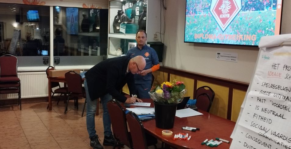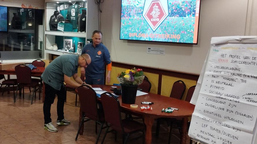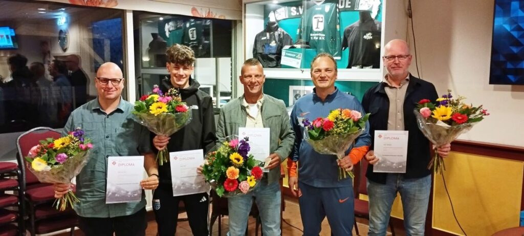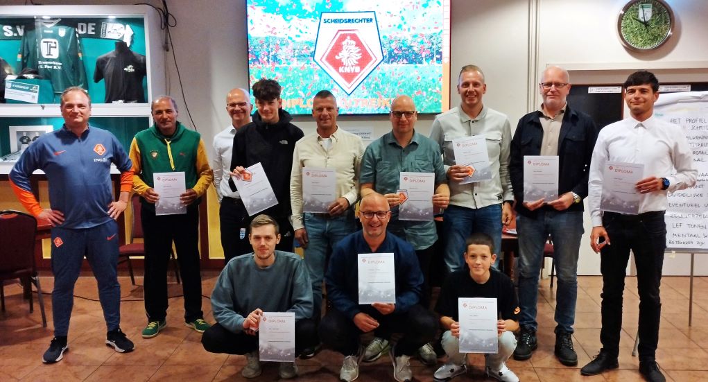 Wekenlange spanning op de gezichten van onze vier scheidsrechters van ’t Harde ontlaadde in een brede, gulle lach na het ontvangen van het fel begeerde papier. Vanaf nu zijn Henri Bruijnes, Rick van ’t Hul, Gert de Groot en Roan Bos gediplomeerde scheidsrechters.