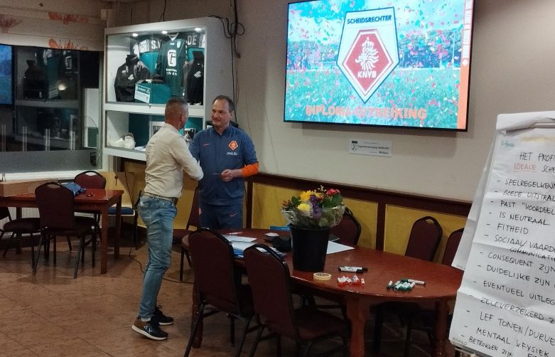 Uiteindelijk was het 6 mei en les 4 waarna de cursisten afzwaaiden en zij gediplomeerde scheidsrechters werden. Wij willen iedereen veel succes wensen met hun loopbaan als scheidsrechter binnen onze vereniging.