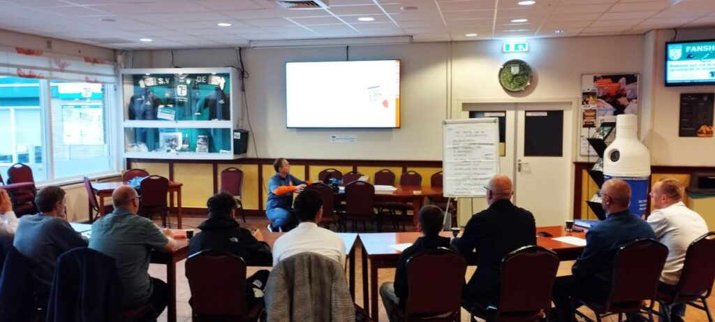 Het begon met een groep van 13 aspirant scheidsrechters, die de cursus voor vereniging scheidsrechter bij s.v. ’t Harde gingen volgen. Bart Jan Olthuis en Peter van Hulsteijn besloten dat, met zo’n grote groep uit één plaats, er vast wel iets georganiseerd kon worden in de kantine van onze club. Na veel overleggen, overleggen en vooral lang wachten was het dan uiteindelijk tijd geworden om te starten. Dinsdag 4 februari begon wat tumultueus, maar hierna was het aan Erik (cursusleider) om alles aan de cursisten uit te leggen. Van groepjes tot individuele opdrachten over alle zaken die een beginnend en gevorderd scheidsrechter kan tegenkomen.