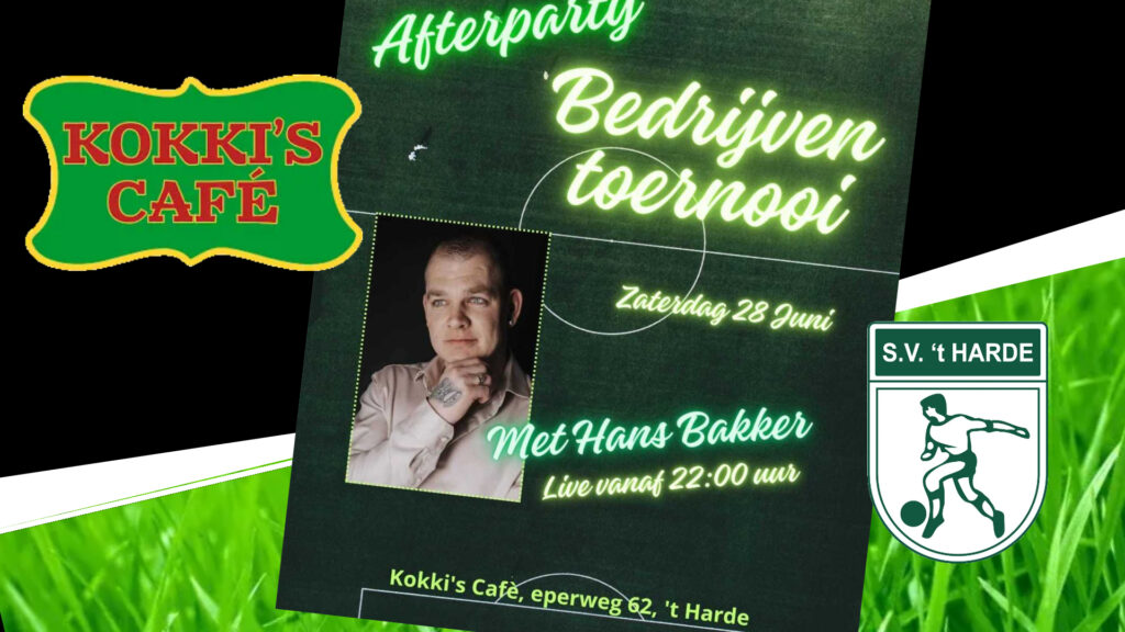 Tevens is er na het bedrijventoernooi ook een Afterparty bij Kokki’s Cafe op ’t Harde met vanaf 22:00 uur Live muziek van Hans Bakker!