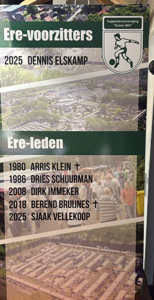 Als blijk van waardering voor hun langdurige inzet en belangrijke bijdragen besloot het bestuur Dennis Elskamp te benoemen tot Erevoorzitter en Sjaak Vellekoop tot Erelid van de supportersvereniging. Tijdens de bijeenkomst werd dit officieel onthuld en gevierd.