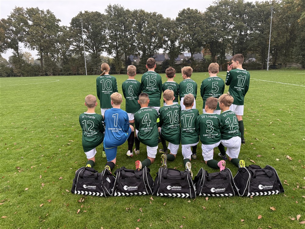 Met trots presenteert S.V. ’t Harde het JO13-2 team in volledig nieuwe outfit! Dankzij de steun van maar liefst vijf gulle sponsoren is het team voorzien van splinternieuwe tenues, trainingspakken én sporttassen. De spelers en staf zijn zichtbaar trots op hun nieuwe uitstraling, en de vereniging is enorm dankbaar voor de betrokkenheid van deze lokale ondernemers.
