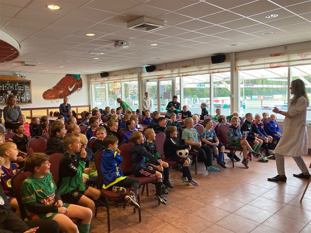 Voor deze activiteit hadden we twee bijzondere keepers uitgenodigd: Jeremiah, keeper van ons G1-team, en Duke Verduin, (nog) reservekeeper van PEC Zwolle. Ze deden hun uiterste best om de schoten te keren. Voor de groepen die niet aan de beurt waren, was er een leuke voetbalquiz.