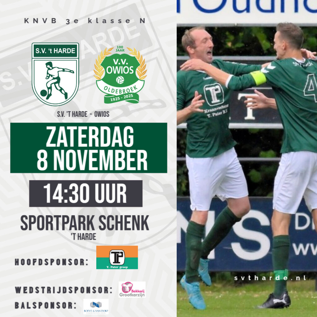 Zaterdag staat er een bijzondere wedstrijd op het programma: de derby tussen S.V. ’t Harde en OWIOS. Een duel dat altijd leeft in de regio en dit seizoen al twee keer eerder gespeeld werd. In de Veluwecup trok S.V. ’t Harde aan het langste eind met een 1-0 overwinning dankzij een doelpunt van Pascal van Hulsteijn. In de bekerwedstrijd op sportpark Bovenmolenwerd het een boeiend 2-2 gelijkspel, waarmee S.V. ’t Harde zich plaatste voor de volgende ronde.