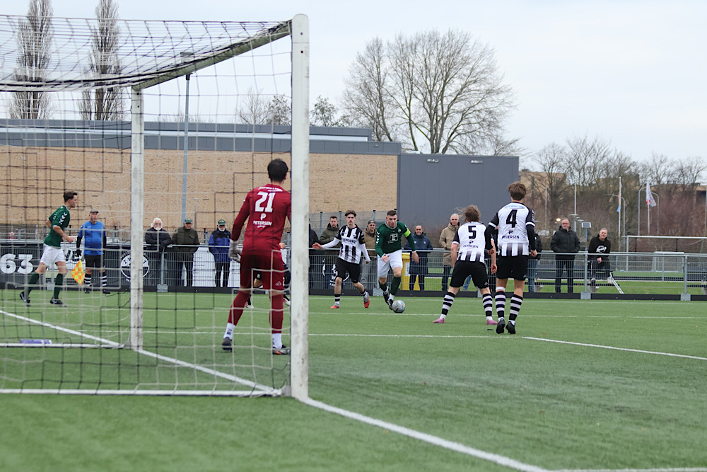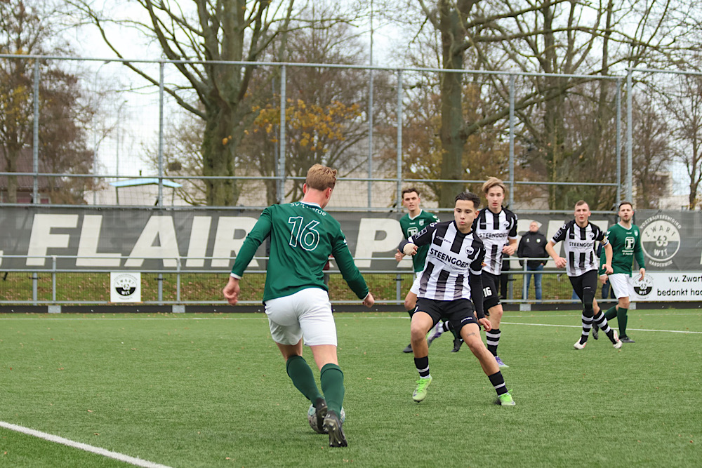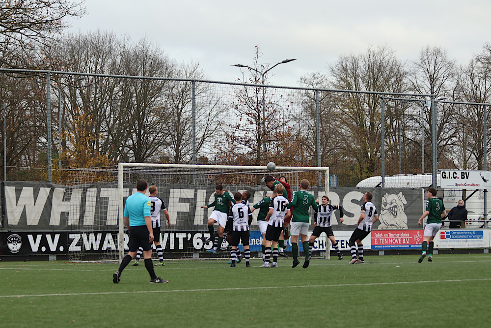 De frustratie langs de lijn nam toe en de scheidsrechter besloot de wedstrijd tijdelijk te staken. Nadat de gemoederen waren bedaard, werd het duel hervat bij een 3-1 stand — Syro de Bock had inmiddels gescoord voor Zwart Wit. In de slotfase maakte Jethro de Graav nog tweemaal zijn naam als topscorer waar, waarmee hij de eindstand op 5-1 bepaalde.