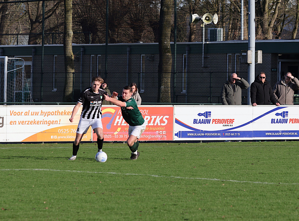 Op een zonovergoten hoofdveld, dat er voor de tijd van het jaar uitstekend bij lag, hoopte S.V. ’t Harde zaterdagmiddag de eerste driepunter na de winterstop te pakken. Het werd echter een teleurstellende middag: Groen-Wit ’62 ging met een overtuigende 0-4 overwinning terug naar huis.