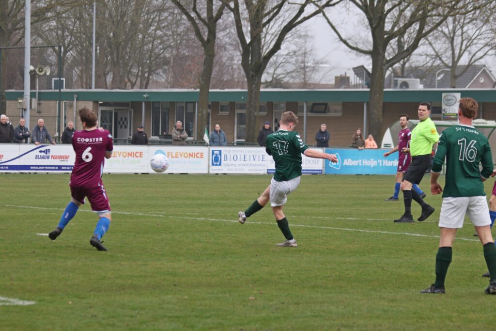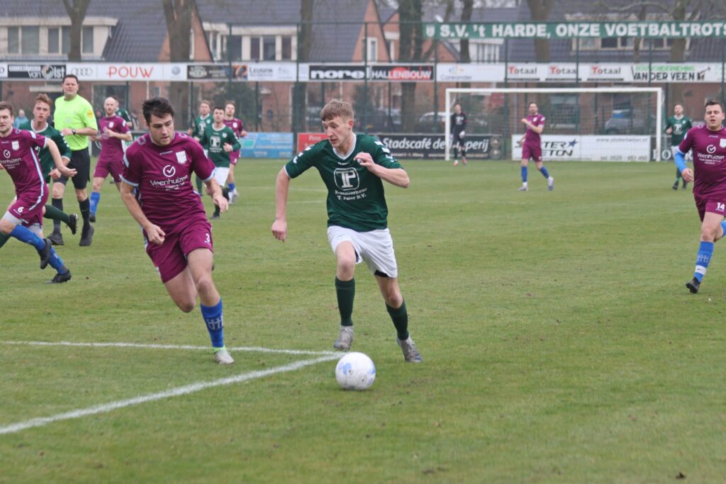 Op sportpark Schenk heeft S.V. ’t Harde een belangrijke en fraaie overwinning geboekt op VVOP uit Voorthuizen. In een wedstrijd vol strijd, wendingen en emotie trokken de groen-witten uiteindelijk met 3-2 aan het langste eind. Scheidsrechter Wolterink floot een prima wedstrijd en hield de controle over het duel.