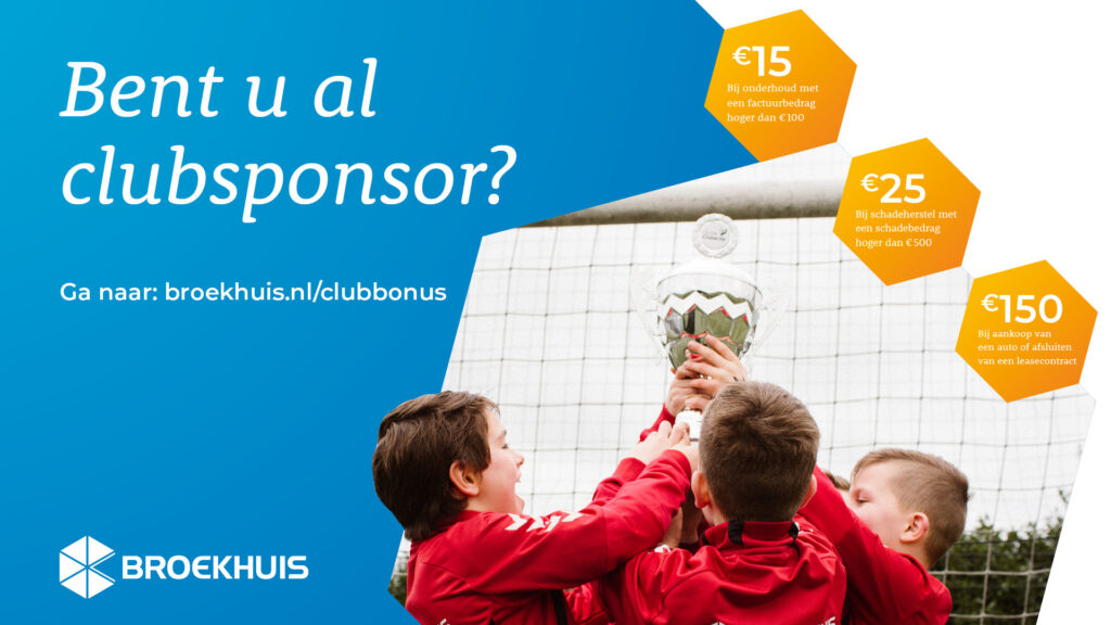 Broekhuis brengt graag mensen in beweging. Helemaal als het om de jeugd gaat. Daarom sponsort Broekhuis veel clubs in Nederland. Samen met u! Want bij aankoop van een nieuwe of gebruikte auto of bij het afsluiten van een leasecontract, gaat € 150 rechtstreeks naar de onze club! Ook bij het laten uitvoeren van schadeherstel of onderhoud ontvangt S.V. ’t Harde een mooie bonus. Als iedereen meedoet, kan dat dus uiteindelijk flink oplopen. De enige voorwaarde is dat u verenigingslid of ouder/verzorger bent van een jeugdlid.