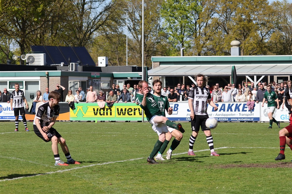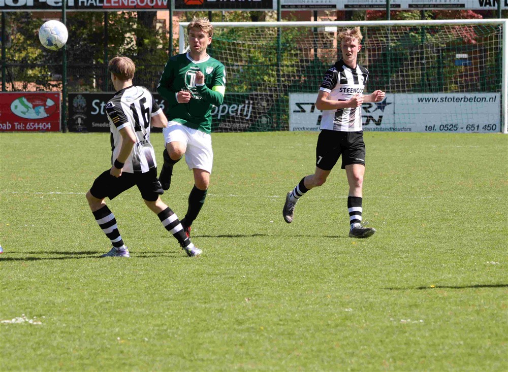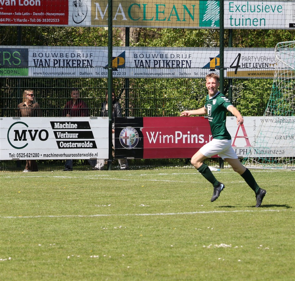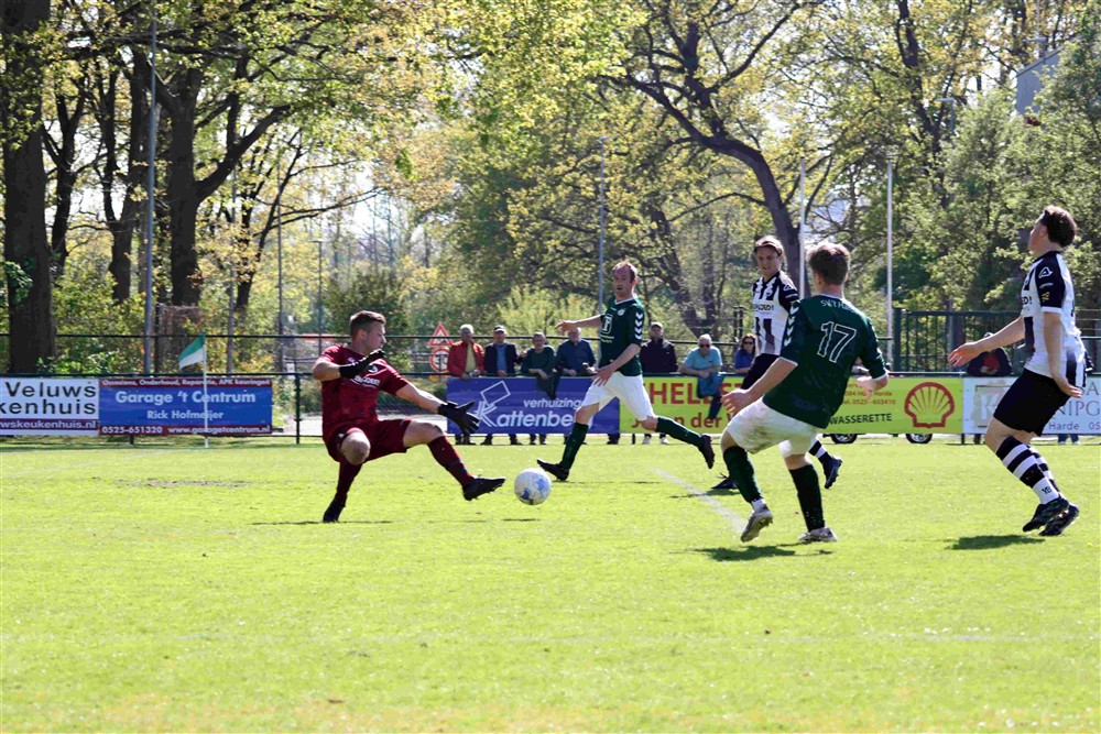 De beslissing viel niet veel later. Daan Elskamp, die kwam vanaf de linkerflank naar binnen en rondde koelbloedig af: 4-2. De spanning was daarmee verdwenen. De goed leidende scheidsrechter Kerkdijk floot na de blessuretijd af en de punten bleven op ’t Harde.